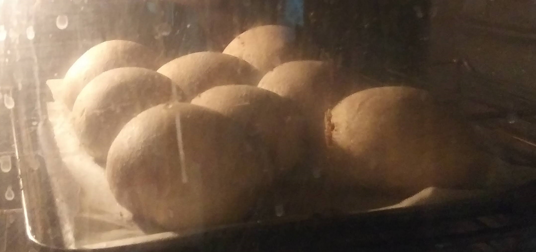This is a very simple bread recipe that produces a nice spongy textured bun, providing it rises well, which is sometimes a challenge when baking, or after the oven has been turned off. I generally leave the buns in the heat of the oven after turning off the oven heat source to help it maintain the risen shape - that's the reason the above pic was taken with the door closed!